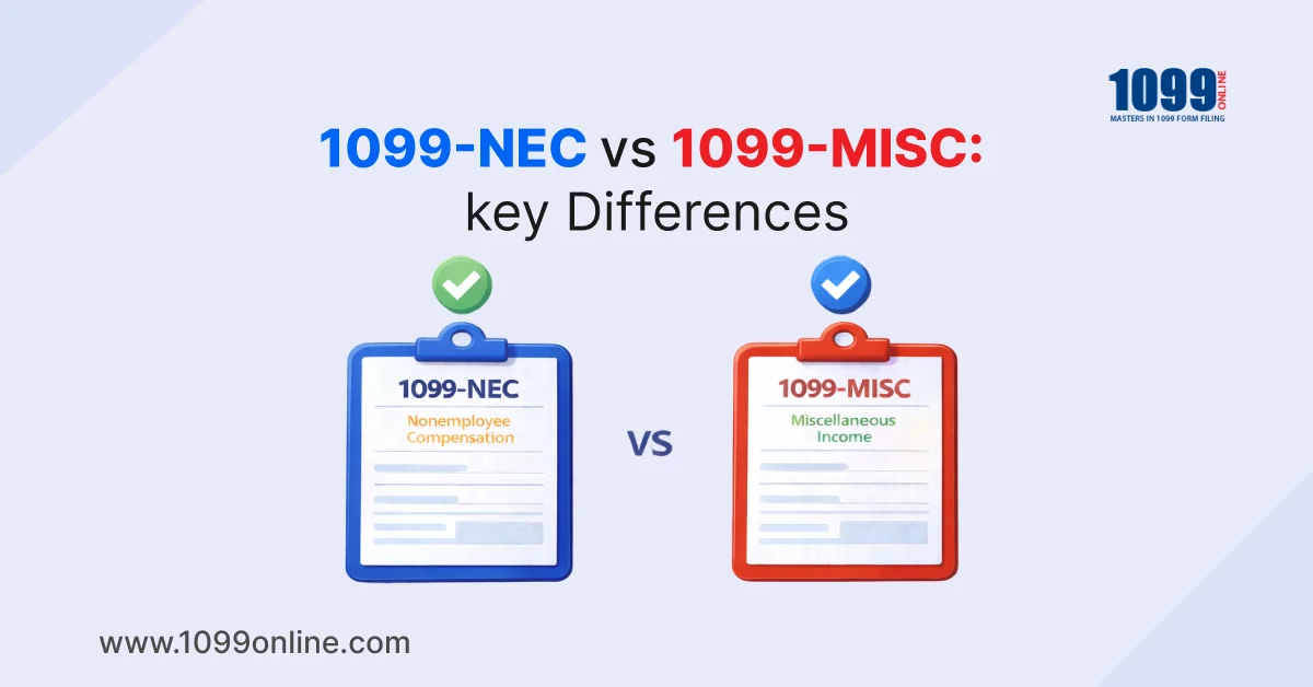 Many businesses still get confused about 1099-NEC vs 1099-MISC, since both forms report non-employee payments. In this guide, we’ll take you through the main differences between 1099-MISC and 1099-NEC, when to use either form, and how to file them.